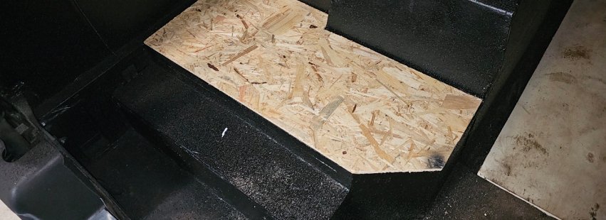 La structure a d’abord reçu quatre couches de liège projeté, formant une barrière isolante continue et naturelle sur les parois. Toutes les zones sensibles, jonctions, angles, passages techniques, ont été soigneusement étanchéifiées au silicone afin d’éviter toute infiltration d’air ou d’eau. Les parties du plancher présentant des signes d’usure ont été rebouchées et consolidées, tandis que les recoins difficiles d’accès ont été remplis à la mousse polyuréthane pour supprimer les ponts thermiques et assurer une isolation homogène dans l’ensemble du véhicule.